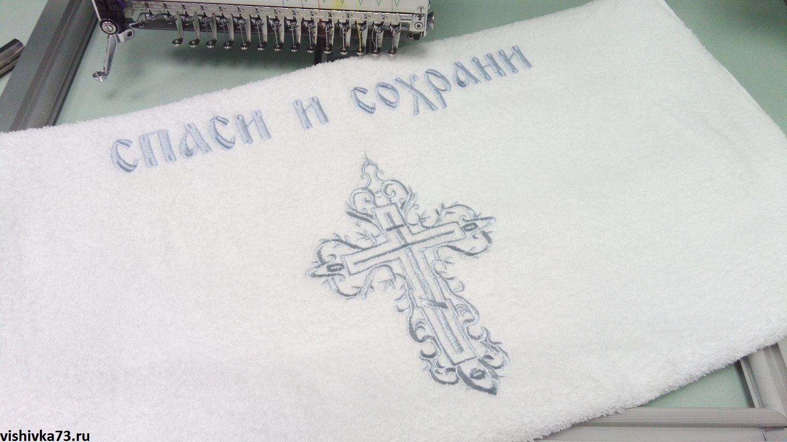 Машинная вышивка на крестильном полотенце